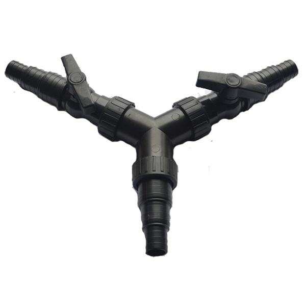 Тройник-разветвитель универсальный для шлангов диаметром 25мм/32мм/38мм с регулировочными кранами